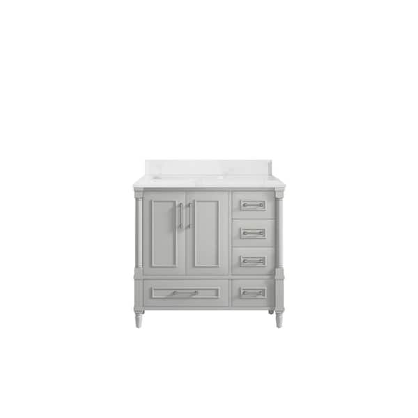 Hudson 36 in. W x 22 in. D x 36 in. H Left Offset Sink Bath Vanity in Coventry Gray with Cove Edge Empira Quartz Top