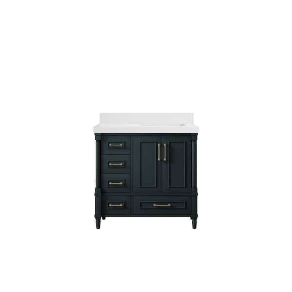 Hudson 36 in. W x 22 in. D x 36 in. H Right Offset Sink Bath Vanity in Dark Green with 2 in. White Quartz Top
