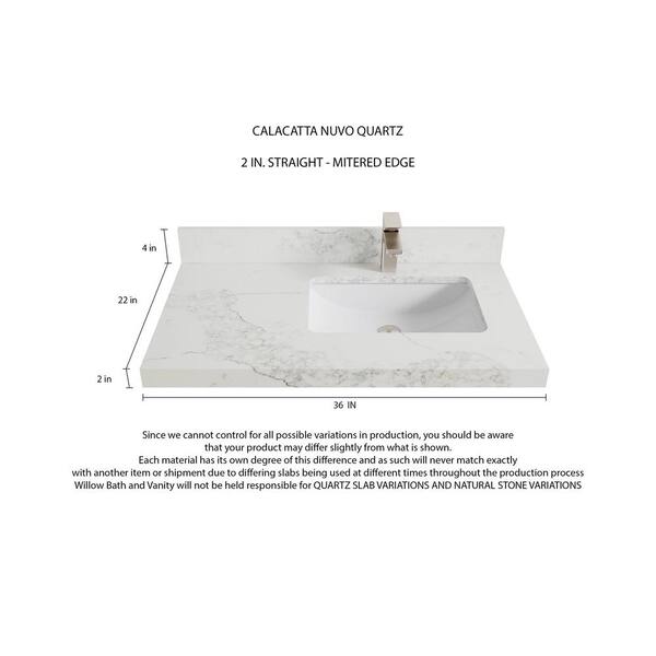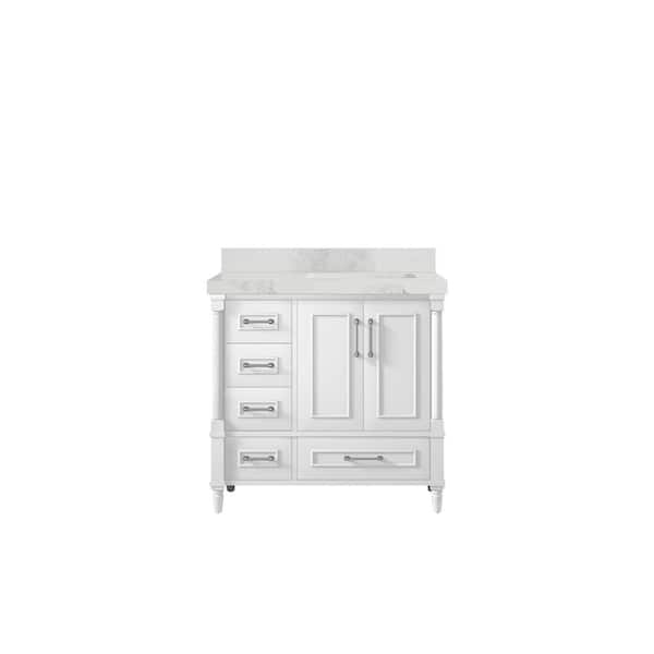 Hudson 36 in. W x 22 in. D x 36 in. H Right Offset Sink Bath Vanity in White with 2 in. Calacatta Nuvo Quartz Top