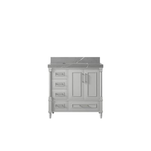 Hudson 36 in. W x 22 in. D x 36 in. H Single Sink Bath Vanity Center in Gray with 2 in. Piatra Quartz Top