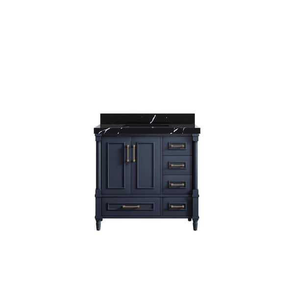 Hudson 36 in. W x 22 in. D x 36 in. H Single Sink Bath Vanity Center in Navy Blue with 2 in. Calcutta Black Qt. Top