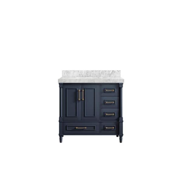 Hudson 36 in. W x 22 in. D x 36 in. H Single Sink Bath Vanity Center in Navy Blue with 2 in. Carrara Marble Top