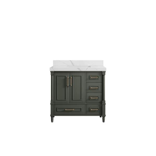 Hudson 36 in. W x 22 in. D x 36 in. H Single Sink Bath Vanity Center in Pewter Green with 2 in. Calacatta Laza Top