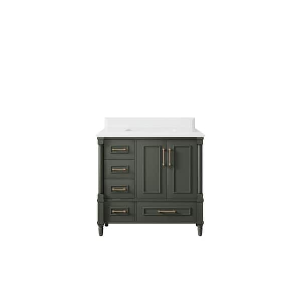 Hudson 36 in. W x 22 in. D x 36 in. H Single Sink Bath Vanity Center in Pewter Green with Cove Edge White Quartz Top