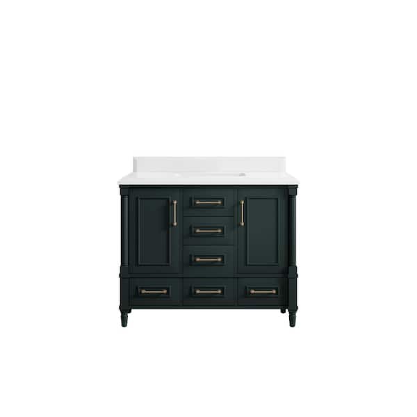 Hudson 42 in. W x 22 in. D x 36 in. H Bath Vanity in Dark Green with Cove Edge White Quartz Top