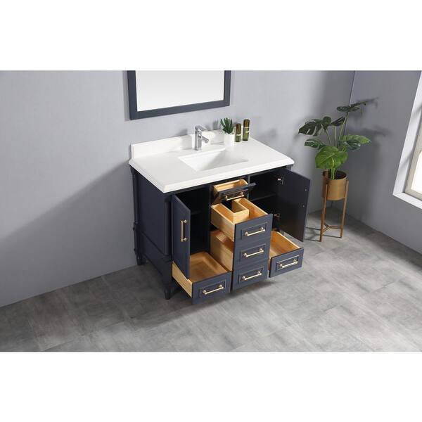 Hudson 42 in. W x 22 in. D x 36 in. H Bath Vanity in Hale Nave Blue with Cove Edge White Vanity Top