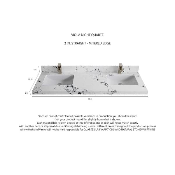 Hudson 60 in. W x 22 in. D x 36 in. H Double Sink Bath Vanity in Black with 2 in. Viola Night Qt. Top