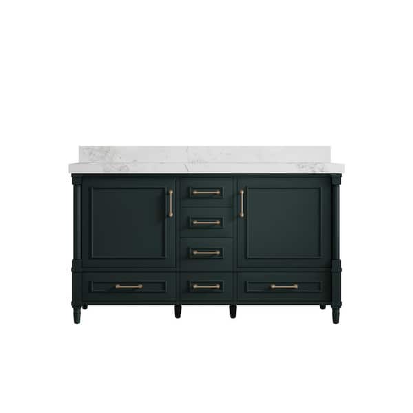 Hudson 60 in. W x 22 in. D x 36 in. H Double Sink Bath Vanity in Dark Green with 2 in. Calacatta Nuvo Quartz Top