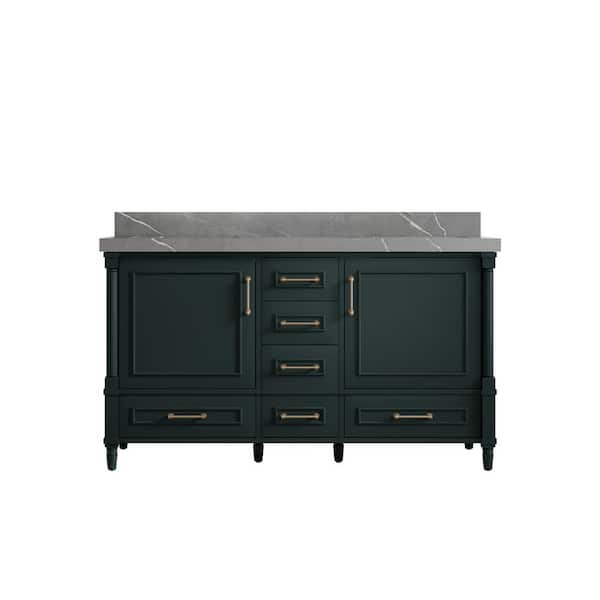Hudson 60 in. W x 22 in. D x 36 in. H Double Sink Bath Vanity in Dark Green with 2 in. Piatra Gray Quartz Top