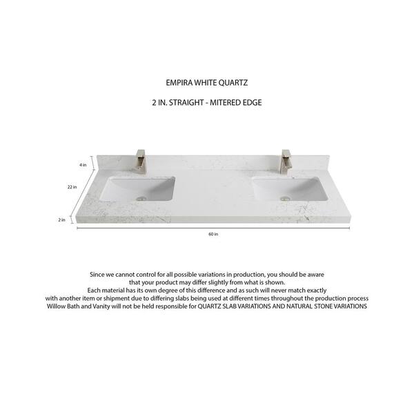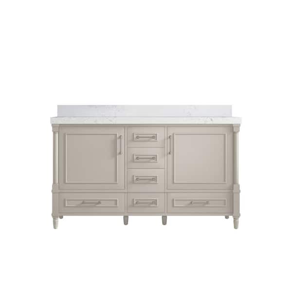 Hudson 60 in. W x 22 in. D x 36 in. H Double Sink Bath Vanity in Fine Grain with 2 in. Empira White Quartz Top