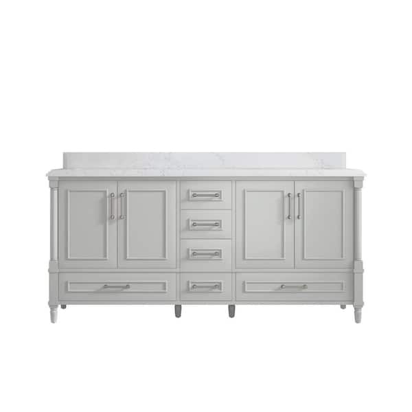 Hudson 72 in. W x 22 in. D x 36 in. H Double Sink Bath Vanity in Coventry Gray with Cove Edge Empira Quartz Top