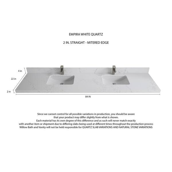 Hudson 84 in. W x 22 in. D x 36 in. H Double Sink Bath Vanity in Coventry Gray with 2 in. Empira Quartz Top