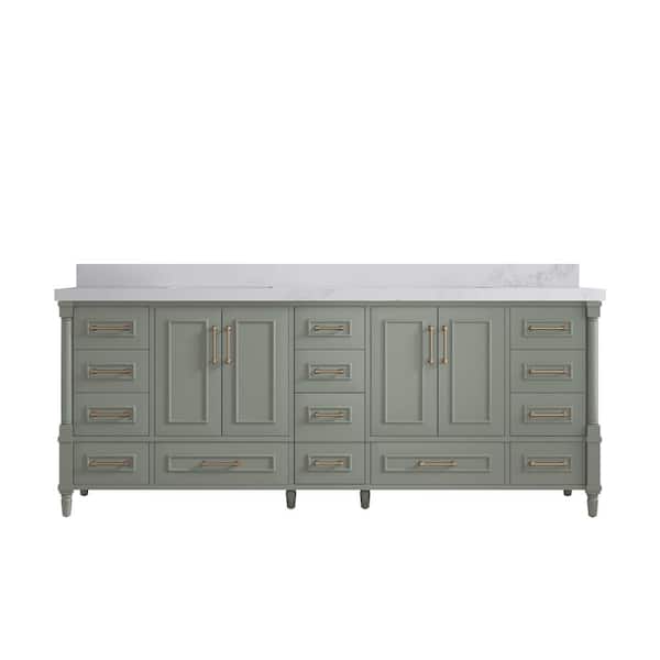 Hudson 84 in. W x 22 in. D x 36 in. H Double Sink Bath Vanity in Evergreen with 2 in. Calacatta Nuvo Quartz Top