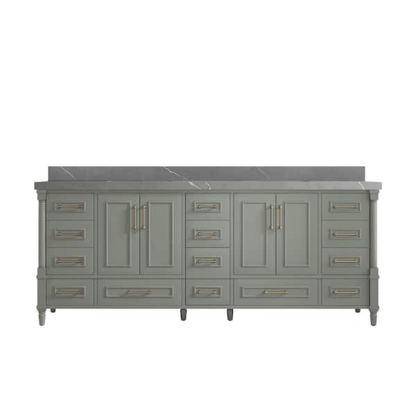 Hudson 84 in. W x 22 in. D x 36 in. H Double Sink Bath Vanity in Evergreen with 2 in. Piatra Gray Quartz Top