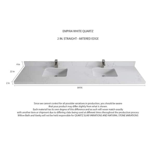 Hudson 84 in. W x 22 in. D x 36 in. H Double Sink Bath Vanity in Fine Grain with 2 in. Empire White Qt. Top