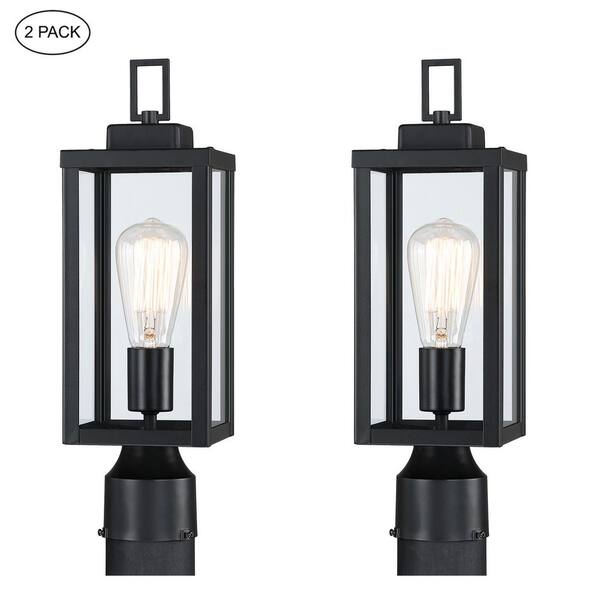 1-Light Black Outdoor Post Light Kits Head with Clear Glass Shade (2-Pack)