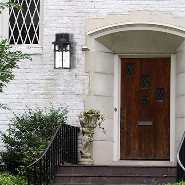 11.92 in. H 1-Light Matte Black Hardwired Outdoor Wall Lantern Sconce