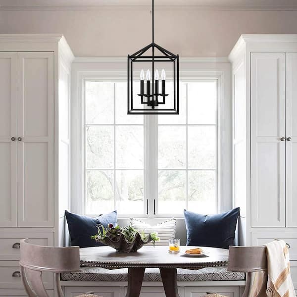12 in. 4-Light Rectangle Lantern Chandelier with Matte Black