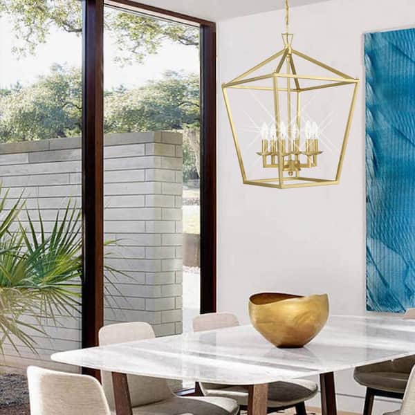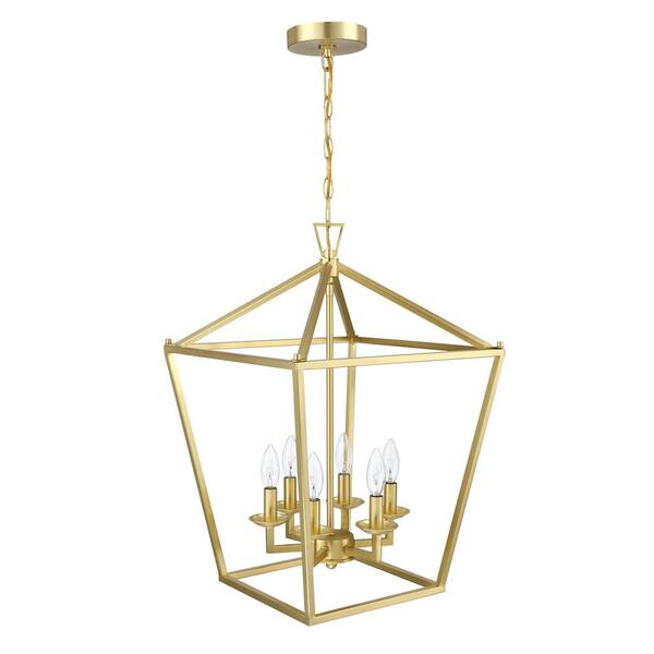 16 in. 6-Light Soft Gold Finish Geometric Vintage Lantern Chandelier Pendant Light