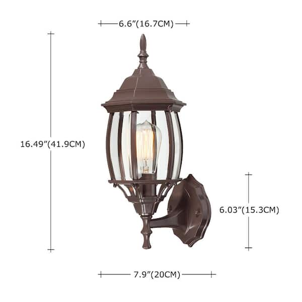 17 in. Bronze Outdoor Hardwired Wall Lantern Sconce with No Bulbs Included