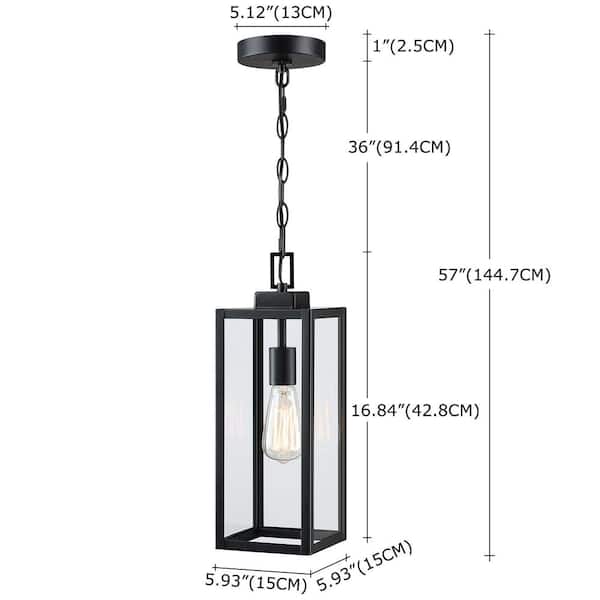 17 in. H 1-Light Matte Black Outdoor Hanging Lantern Pendant