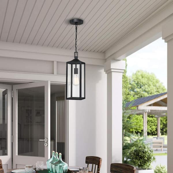 18 in. 1-light Matte Black Dimmable Outdoor Pendant Light with Clear Glass and No Bulbs Included