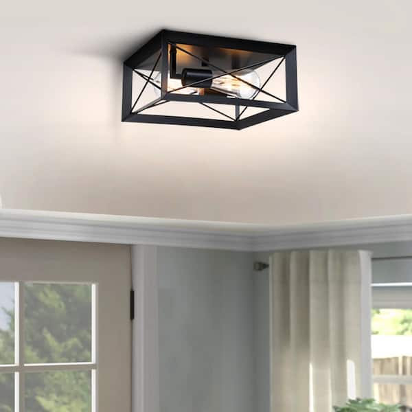 2-Light 12 in. Square Flush Mount Light Fixtures with Matte Black Finish