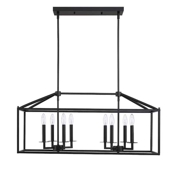 35.6 in. 8-Light Island Linear Pendant Chandelier with Matte Black