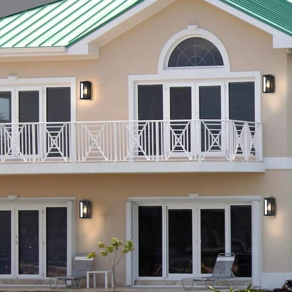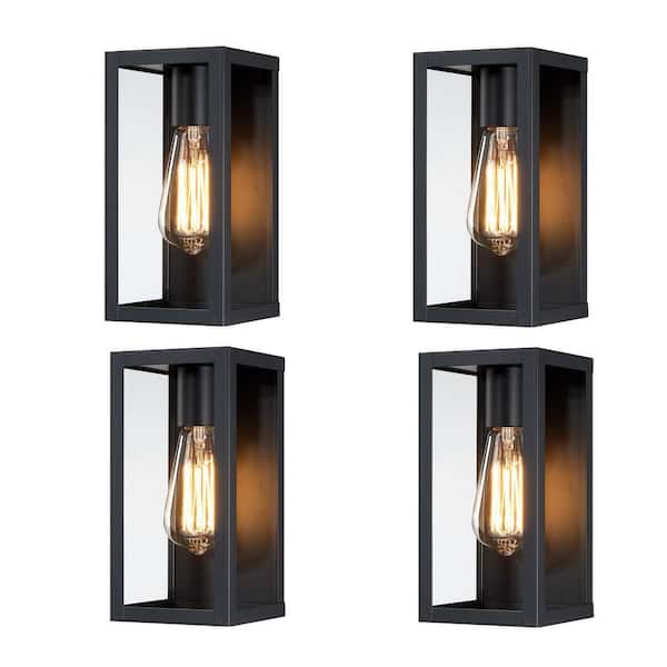 4 Pack 1-Light 10in" Matte Black Finish Outdoor Wall Lantern Scone With Clear Glass Shade