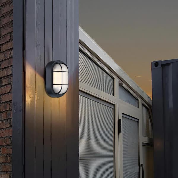 8.5 in. Black Outdoor Hardwired Ellipse Frosted Glass Shade Wall Lantern Scone with No Bulbs Included
