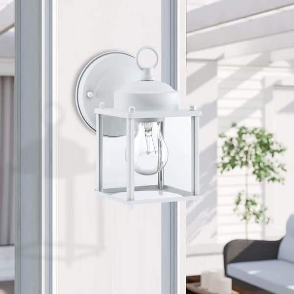 8.in 1-Light Outdoor Hardwired Wall Lantern Sconce with White and Clear Glass Shade(2-Pack)