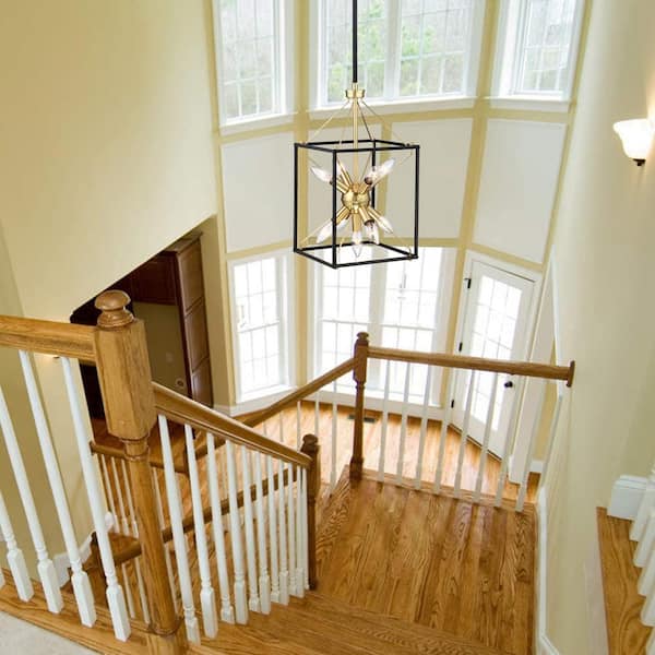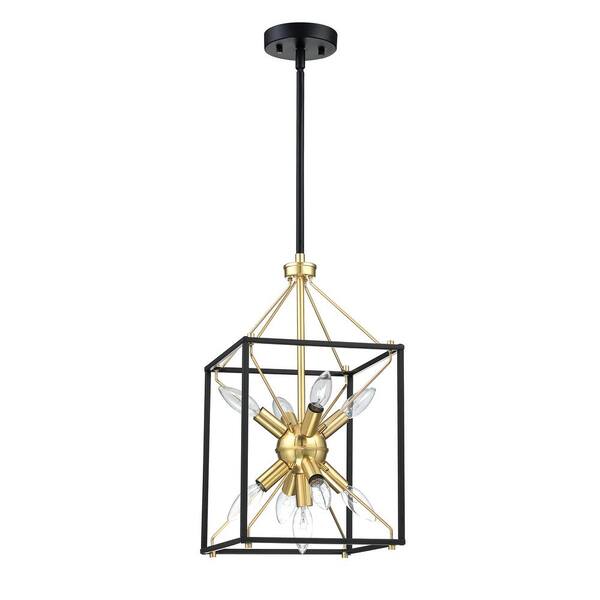 Alfa 10 in. 9-Light Modern Rectangle Lantern Pendant Light with Matte Black Finish and Gold Painting Inside