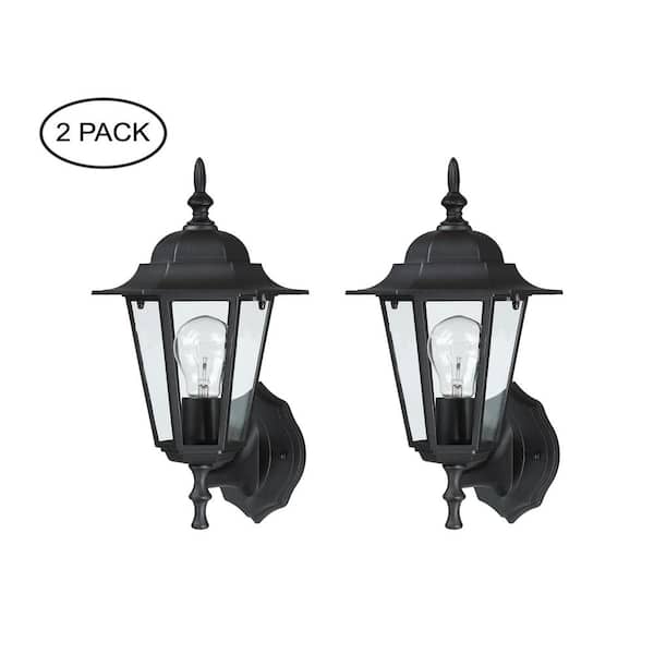 Allison 14.38 in. 1-Light Matte Black Outdoor Wall Lantern Sconce with Clear glass(2-Pack)