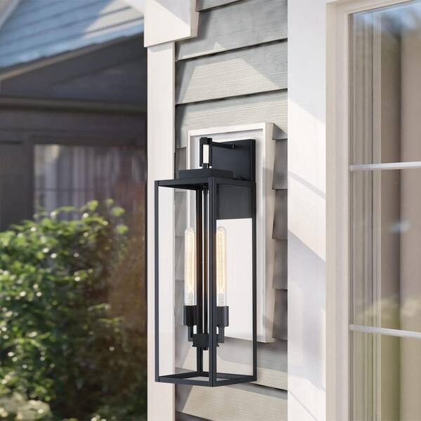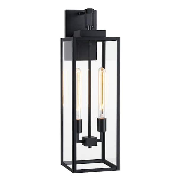 Bonanza 27 in. H 2-Light Matte Black Hardwired Outdoor Wall Lantern Sconce