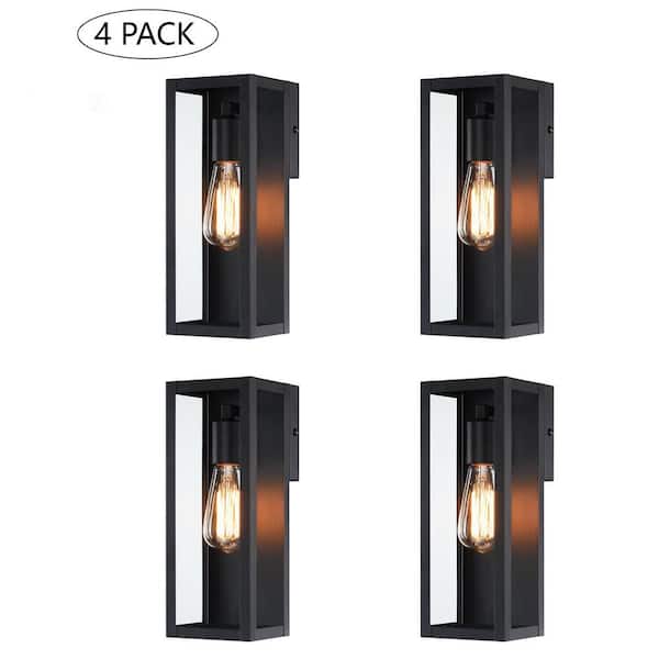 Cali 1-Light 13.15 in. Outdoor Wall Light with Matte Black Finish and Clear Glass Shade (4-Pack)