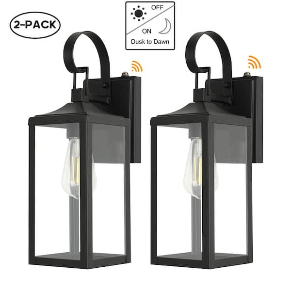 Castle 1-Light 16in. Dusk to Dawn Outdoor Wall Light with Matte Black Finish and Clear glass shade(2-pack)