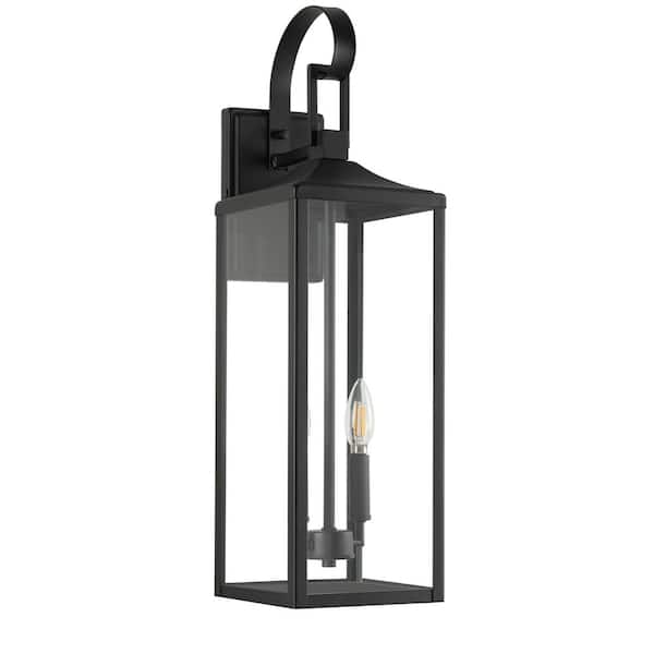 Castle 2-Light 25 in. Matte Black Outdoor Wall Lantern Sconce