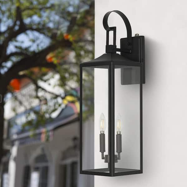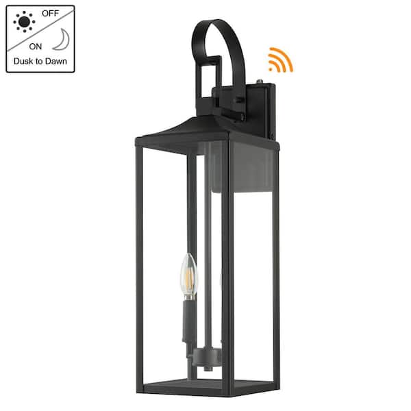 Castle 2-Light 25 in. Matte Black Outdoor Wall Lantern Sconce with Dusk to Dawn Sensor