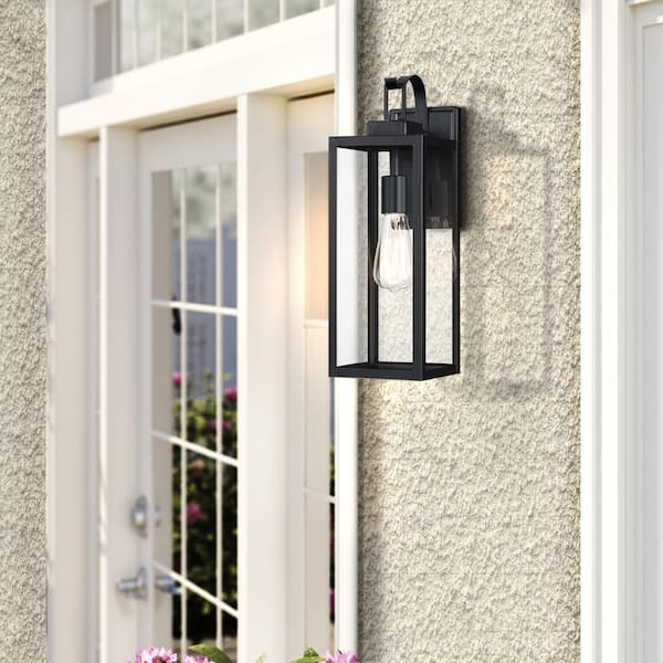 Foothill 18 in. 1-Light Matte Black Outdoor Hardwired Wall Lantern Sconce with Clear Glass