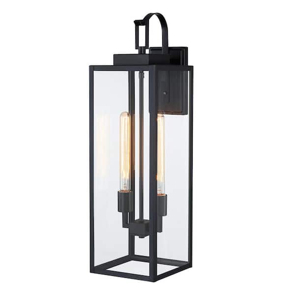Foothill 27.5 in. H 2-Light Matte Black Outdoor Hardwired Wall Lantern Sconce