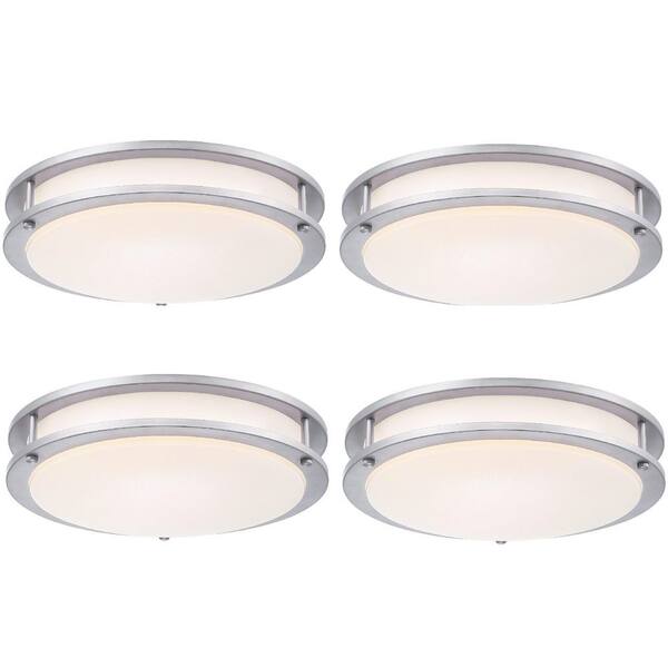 Hanz 13 in. Brushed Nickel Selectable LED 2700K, 3000K, 3500K, 4000K, 5000K Flush Mount Ceiling Light (4-Pack)