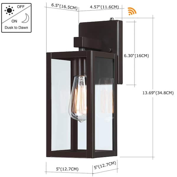 Martin 13.5 in. 1-Light Bronze Outdoor Wall Lantern Sconces with No Bulbs Included Dusk to Dawn(2-Pack)