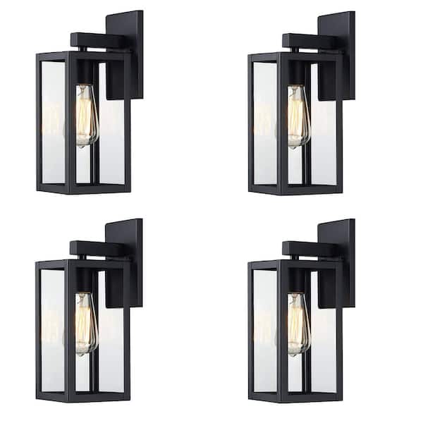 Martin 13 in. 1-Light Matte Black Outdoor Wall Lantern Sconces with No Bulbs Included(4-Pack)