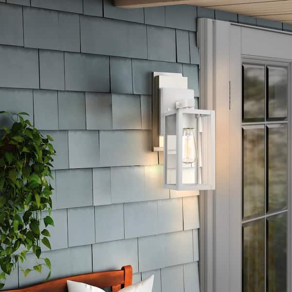 Martin 13 in. 1-Light White Hardwired Outdoor Wall Lantern Sconce with No Bulbs Included
