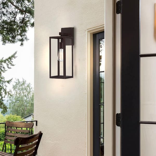 Martin 17.5 in. 1-Light Bronze Hardwired Outdoor Wall Lantern Sconce with No Bulbs Included