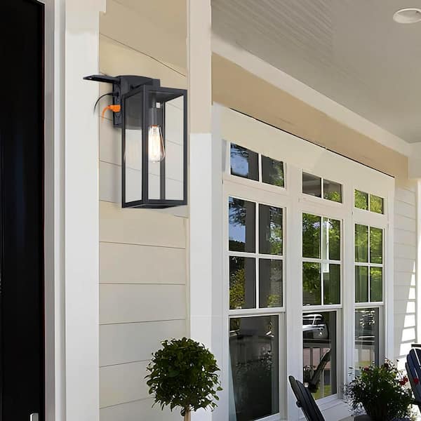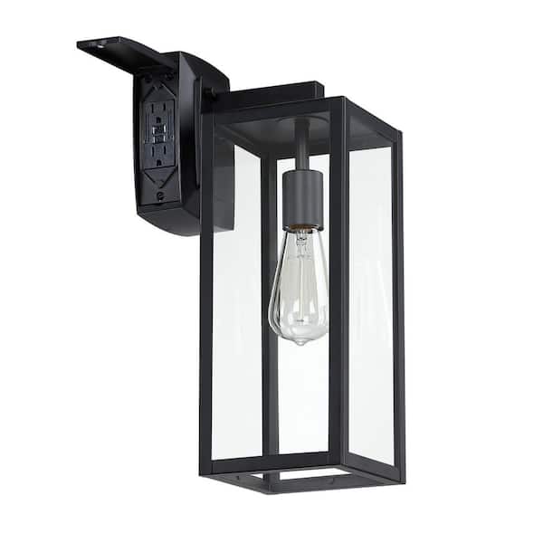 Martin 17 in 1-Light Matte Black Outdoor Wall Lantern Sconce with GFCI Outlet