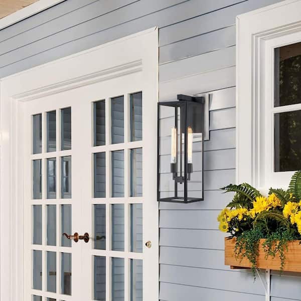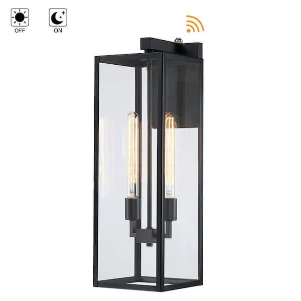 Martin 25 in. 2-Light Matte Black Hardwired Outdoor Wall Lantern Sconce with Dusk to Dawn