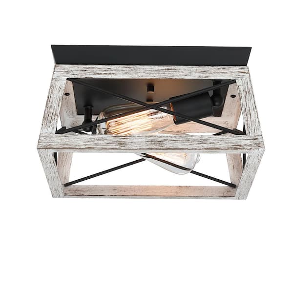Mousse 12 in. W 2-Light Flush Mount with Matte Black Finish and Oak Accents