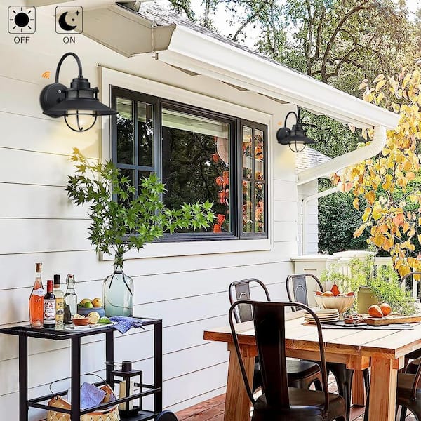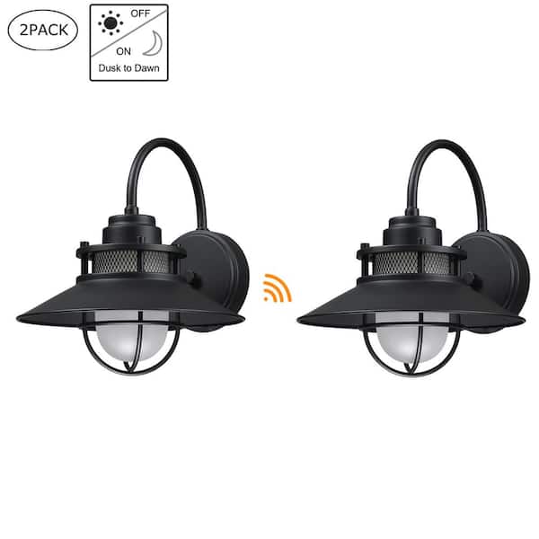 ORA 11 in. 1-Light Matte Black Dusk to Dawn Outdoor Wall Light (2-Pack)