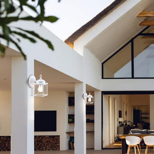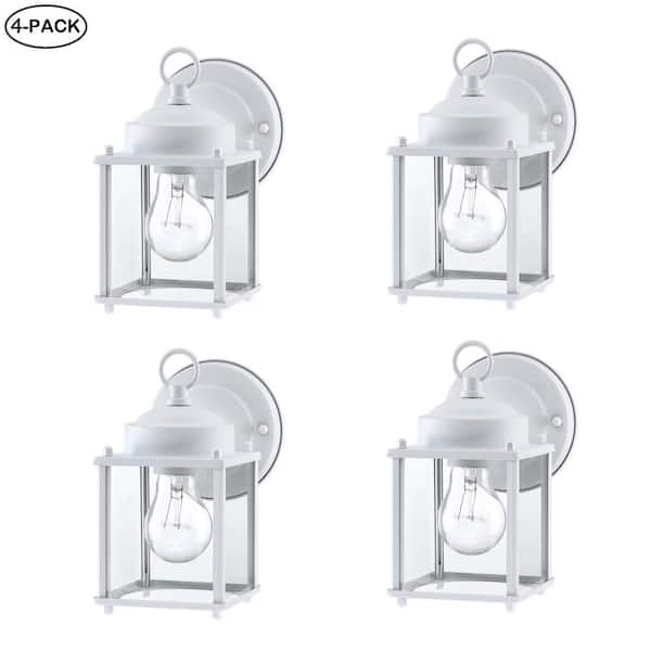 Rom 8 in.1-Light Outdoor Wall Light with Matte White and Clear Glass Shade(4-Pack )